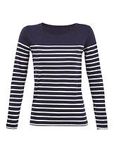 Dámske pruhované tričko s dlhým rukávom a okrúhlym výstrihom. Je vyrobené z kvalitnej česanej Ringspun bavlny, ktorá je navyše enzymaticky ošetrená. Tým dodáva tričku ešte väčšiu hebkosť. Naviac je odolnejší a trvalejší. Produkt spĺňa štandardy certifikátov Oeko-Tex, Vegan a Fair Working Conditions.