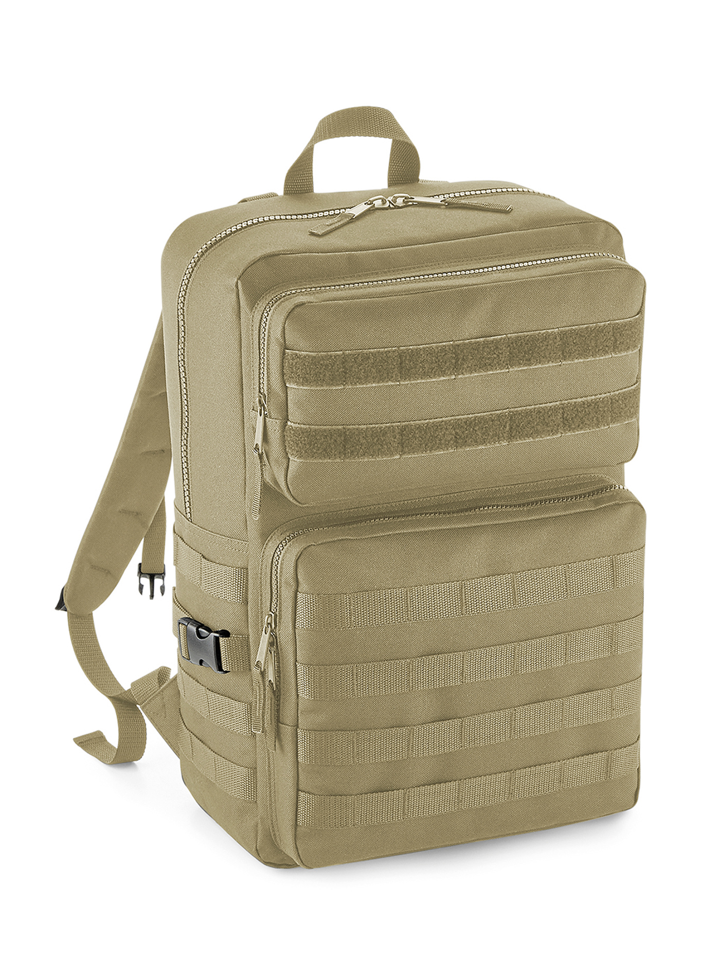 Predstavujeme Vám batoh vo vojenskom štýle na dlhé túry. Batoh má polstrované ramenné druhýkrát a chrbát pre zachovanie pohodlie pri maximálnej záťaži. Využiť môžete hlavné veľkú kapsu na zips, alebo dve predné vrecká, ktoré rozhodne nie sú len na drobnosti. Vybrať si môžete zo tri tmavých vojenských farieb.