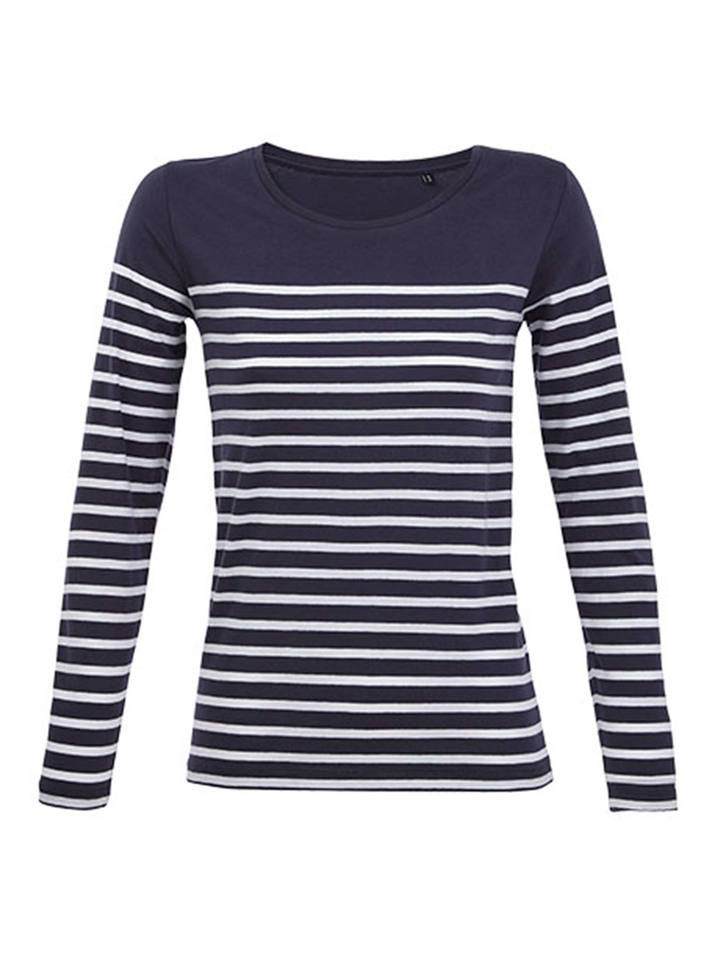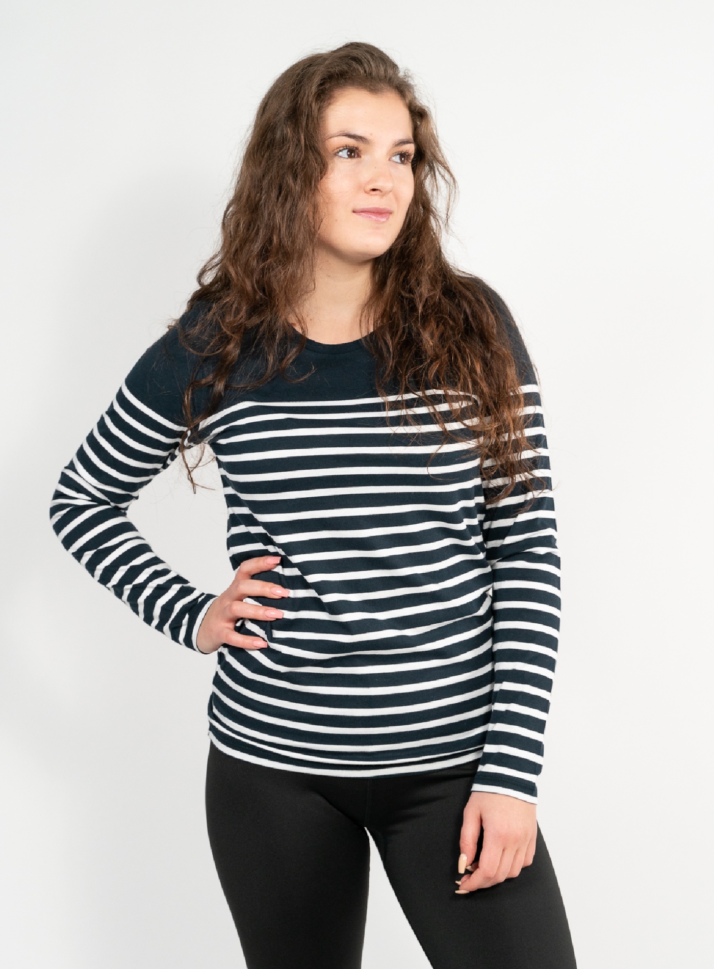Dámske pruhované tričko s dlhým rukávom a okrúhlym výstrihom. Je vyrobené z kvalitnej česanej Ringspun bavlny, ktorá je navyše enzymaticky ošetrená. Tým dodáva tričku ešte väčšiu hebkosť. Naviac je odolnejší a trvalejší. Produkt spĺňa štandardy certifikátov Oeko-Tex, Vegan a Fair Working Conditions.