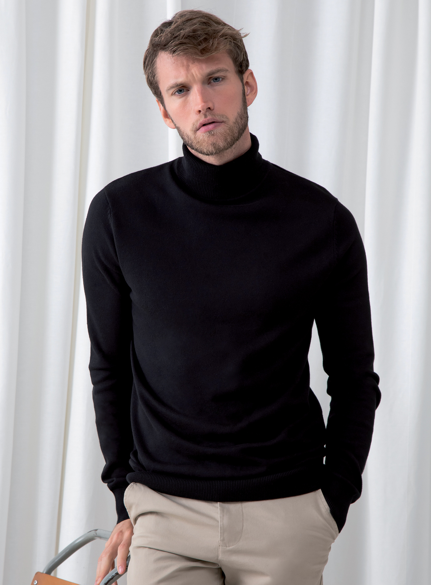 Pánsky elegantný rolák. Tento jednofarebný čierny rolák sa hodí ako pod sako, tak pod džísky. Je to vynikajúca náhrada za košeľu pre ľudí, ktorí neradi nosia kravatu, alebo motýlika. Príde vhod ako do práce, tak pre voľný čas, cestovanie, alebo stretnutie s priateľmi.