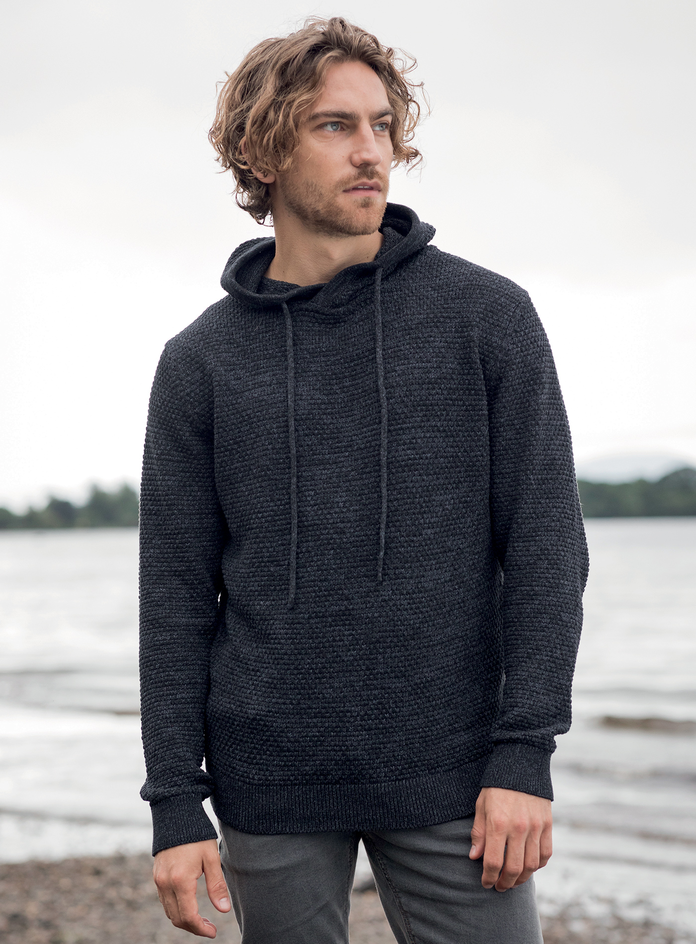 Moderný pánsky sveter s kapucňou. Je veľmi príjemný na dotyk a na jeseň aj jar skvele zahreje. Moderný strih a pletený materiál dodávajú svetru netradičný a výnimočný vzhľad.